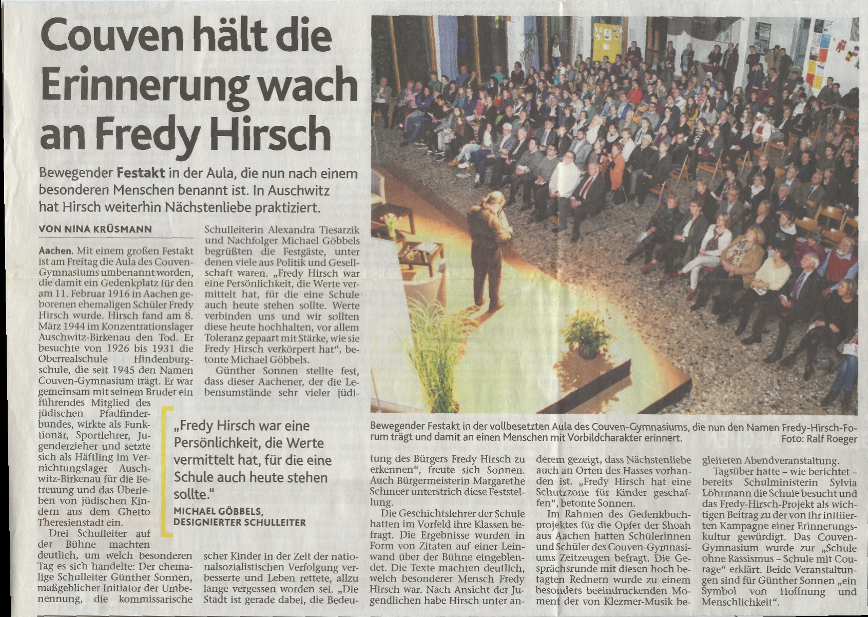 Couven hält die Erinnerung wach an Fredy Hirsch